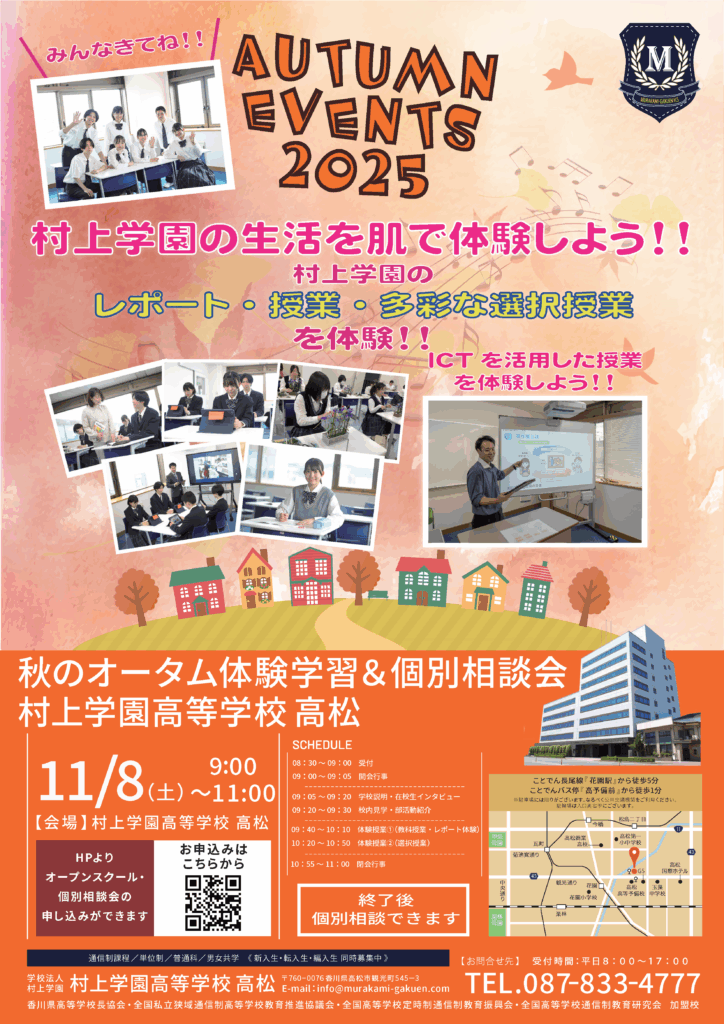 【人気企画】村上学園高等学校 高松校|オープンスクール&オータム体験 2025 開催!