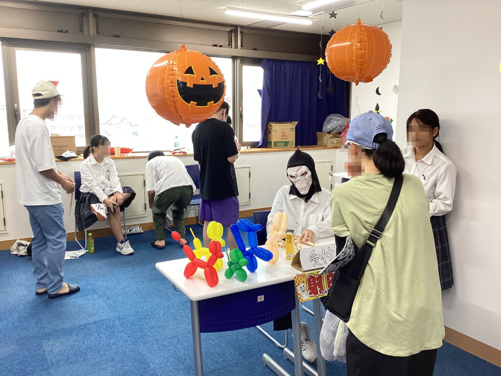 1年生は、ハロウィンをモチーフにした装飾で校内を彩り、射的やボウリングなどの出店を開いて縁日を開催。さらに、校内を巡るスタンプラリーも企画し、多くの来場者が楽しんでいました。